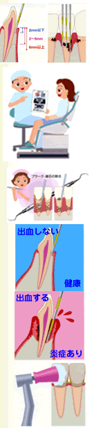 X線写真、歯周ポケットの測定、歯肉からの出血、動揺度、噛み合わせ等の検査、生活習慣のチェック、歯周病原菌の検査等をさせて頂き、情報を集めます。